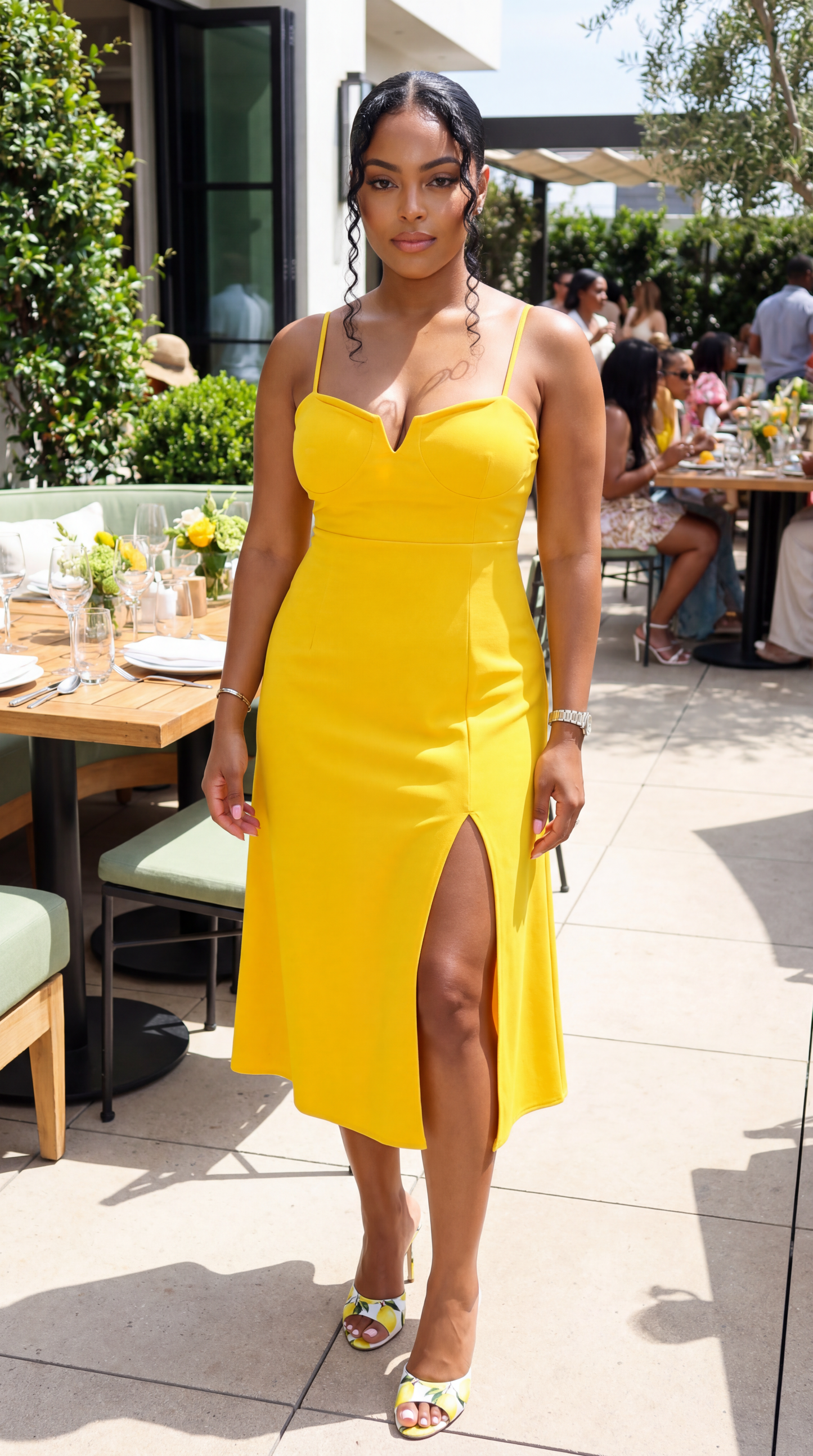 Our 'Lola Front Split Midi Dress' is the perfect spring/summer dress to add to your closet. Featuring a beautiful yellow gold color that is sure to catch eyes. Versatile enough for a casual day out, brunch, wedding, summer date night, or whenever you decide. You can't go wrong with the Lola dress!